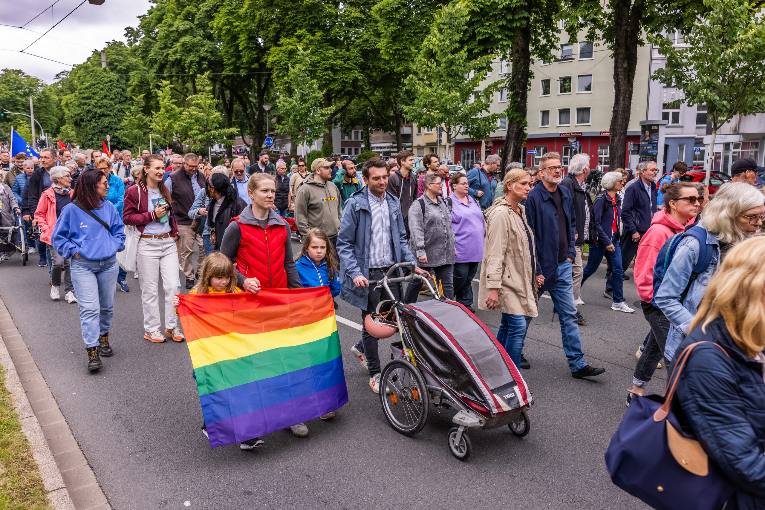 Und darum sind wir heute unterwegs. Um auf den Wert der Demokratie hinzuweisen und die Demokratiefeinde in ihre Schranken zu weisen. Wir sind die Mehrheit, nicht sie!