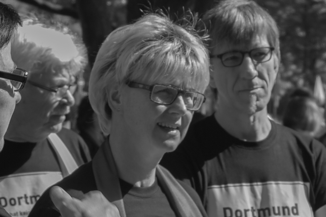 Rund 15 Jahre war sie die Co-Vorsitzende unseres Arbeitskreises und Vertreterin des DGB, furchtlos, pragmatisch und mit klarem Urteilvermögen angesichts der rechtsextremen Umtriebe in der Stadt. Ungezählte Veranstaltungen und Demonstrationen hat sie für und mit dem Arbeitskreis durchgeführt, die alle dem Zweck dienten, das demokratische Dortmund zu stärken. Sie wollte, dass die Mitte der Gesellschaft an dieser Stelle zusammensteht trotz aller weltanschaulichen Differenzen. Auch als sie schon von ihrer schweren Krankheit gezeichnet war, hat sie noch mit uns diskutiert und geplant, zum Beispiel das in diesem Jahr anstehende 20-jährige Jubiläum des Arbeitskreises.