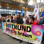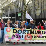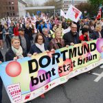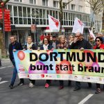 Wenn die Nazis durch die Stadt trampeln, stellen wir uns ihnen vereint entgegen und feiern ein Fest für Demokratie und europäische Einigung. Wir laden alle ein, insbesondere die Menschen aus anderen europäischen Ländern, die – seit langem oder erst kurz – in Dortmund leben. Versammelt Euch mit uns. Bringt etwas Typisches für Euer Land mit wie Baguette, Wein, Oliven oder Vollkornbrot. Lasst uns gemeinsam die Europahymne singen und den Nazis