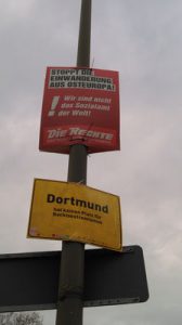 Aktive Hilfe gegen Rechts bietet der Arbeitskreis gegen Rechtsextremismus Dortmund im Landtagswahlkampf: Die am Bündnis beteiligten Parteien können das Plakat „Dortmund hat keinen Platz für Rechtsextremismus“ nutzen, um genau dort ein Zeichen zu setzen, wo die Rechten plakatieren.